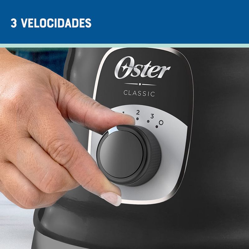 Licuadora clásica Oster® negra con perilla ergonómica de 3 velocidades BLST4655B + 1 Botella Sistema 600ML Tritan Swift DE REGALO (colores surtidos)