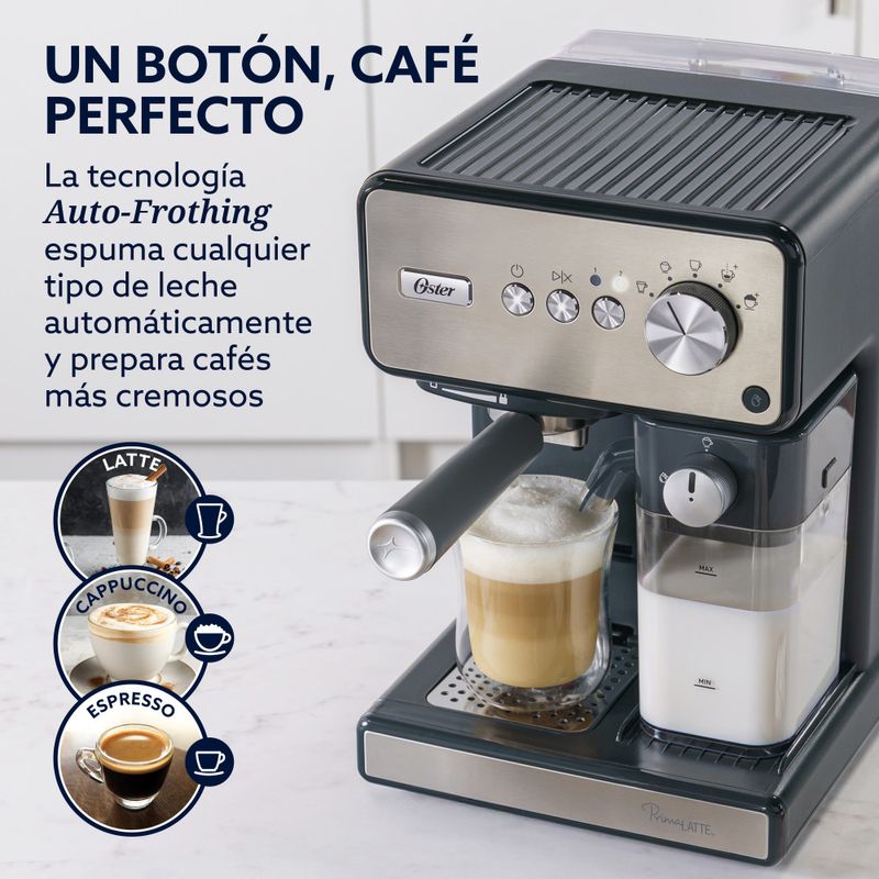 Oster Cafetera Automática de Espresso, PrimaLatte, Acero Inoxidable, BVSTEM6604SS